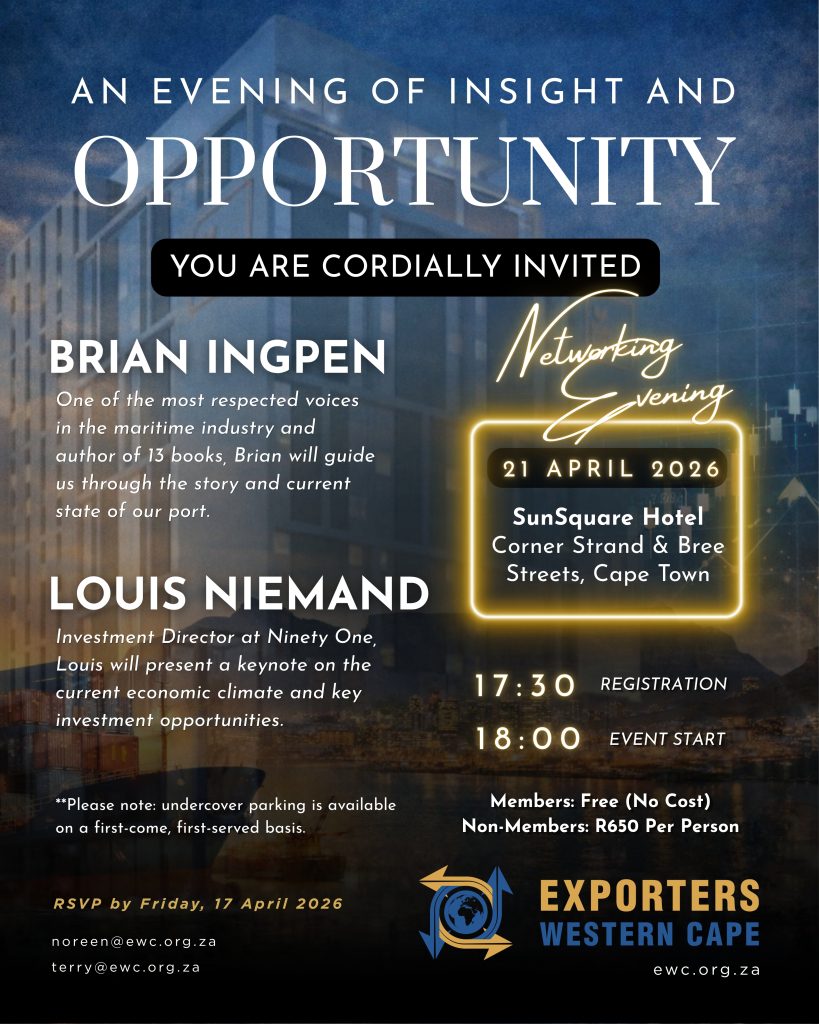 RSVP now to noreen@ewc.org.za or terry@ewc.org.za